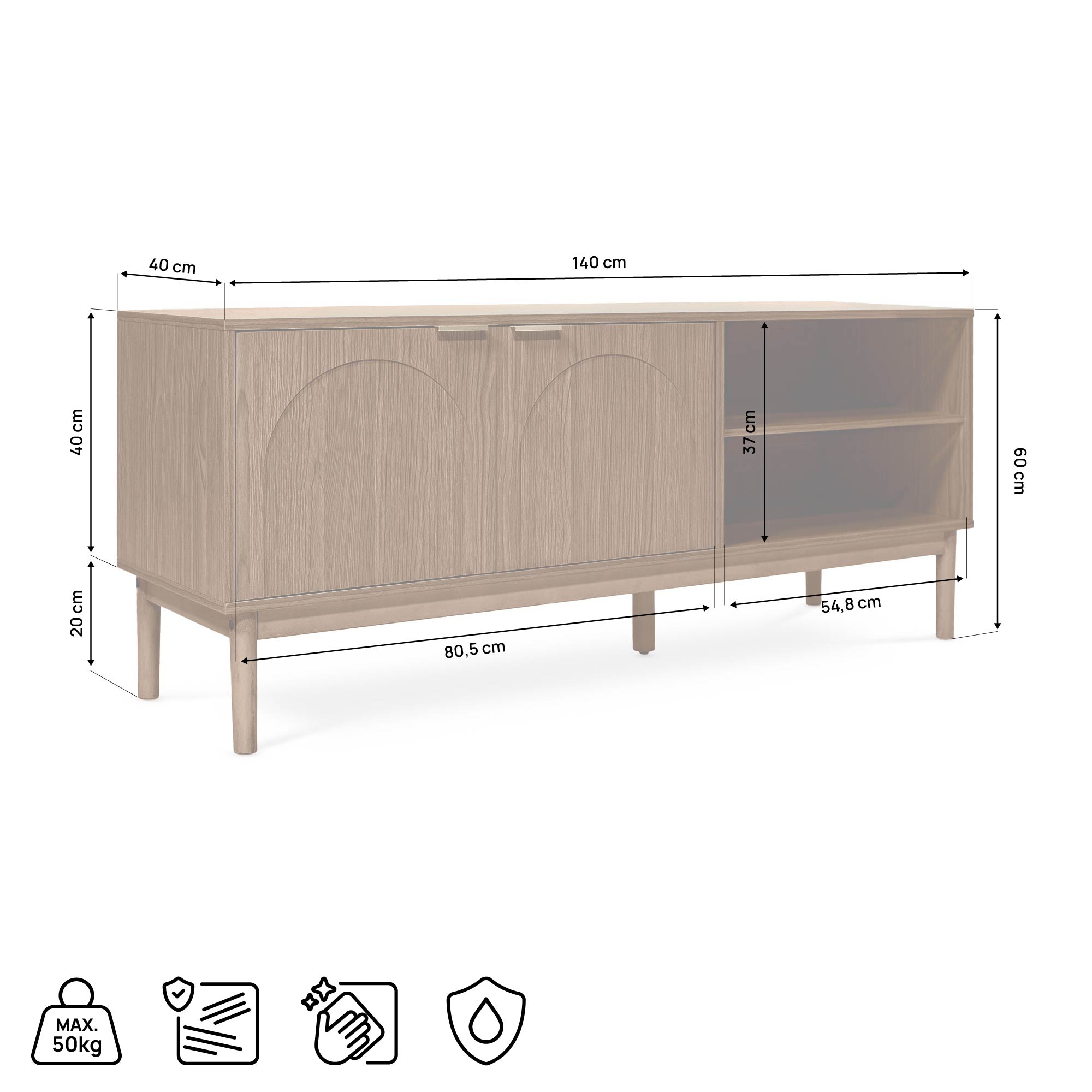 Έπιπλο TV 140cm 2 πόρτες, Φινίρισμα καρυδιά NOLAN