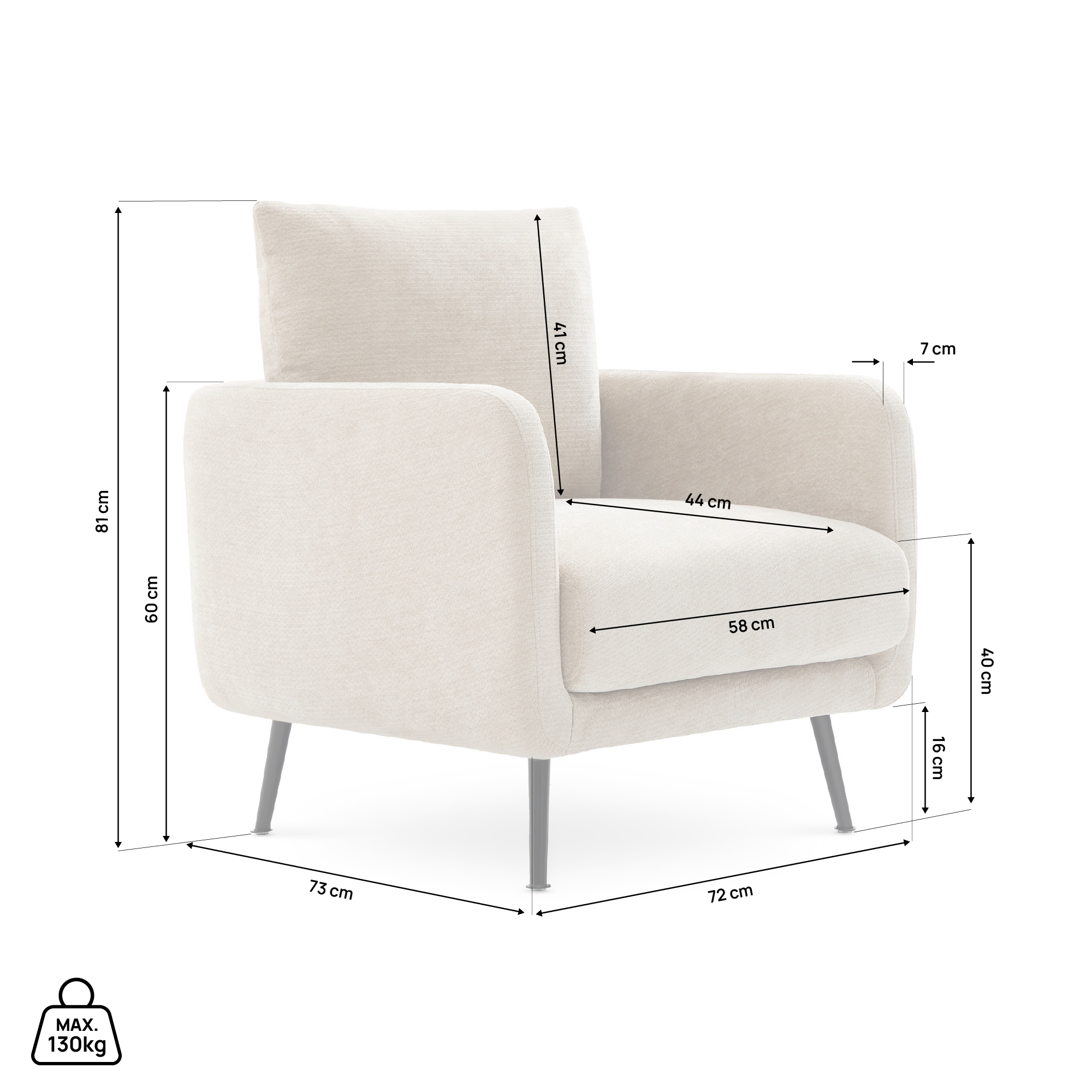 Πολυθρόνα EMMA designer σε μπεζ ύφασμα σενίλ